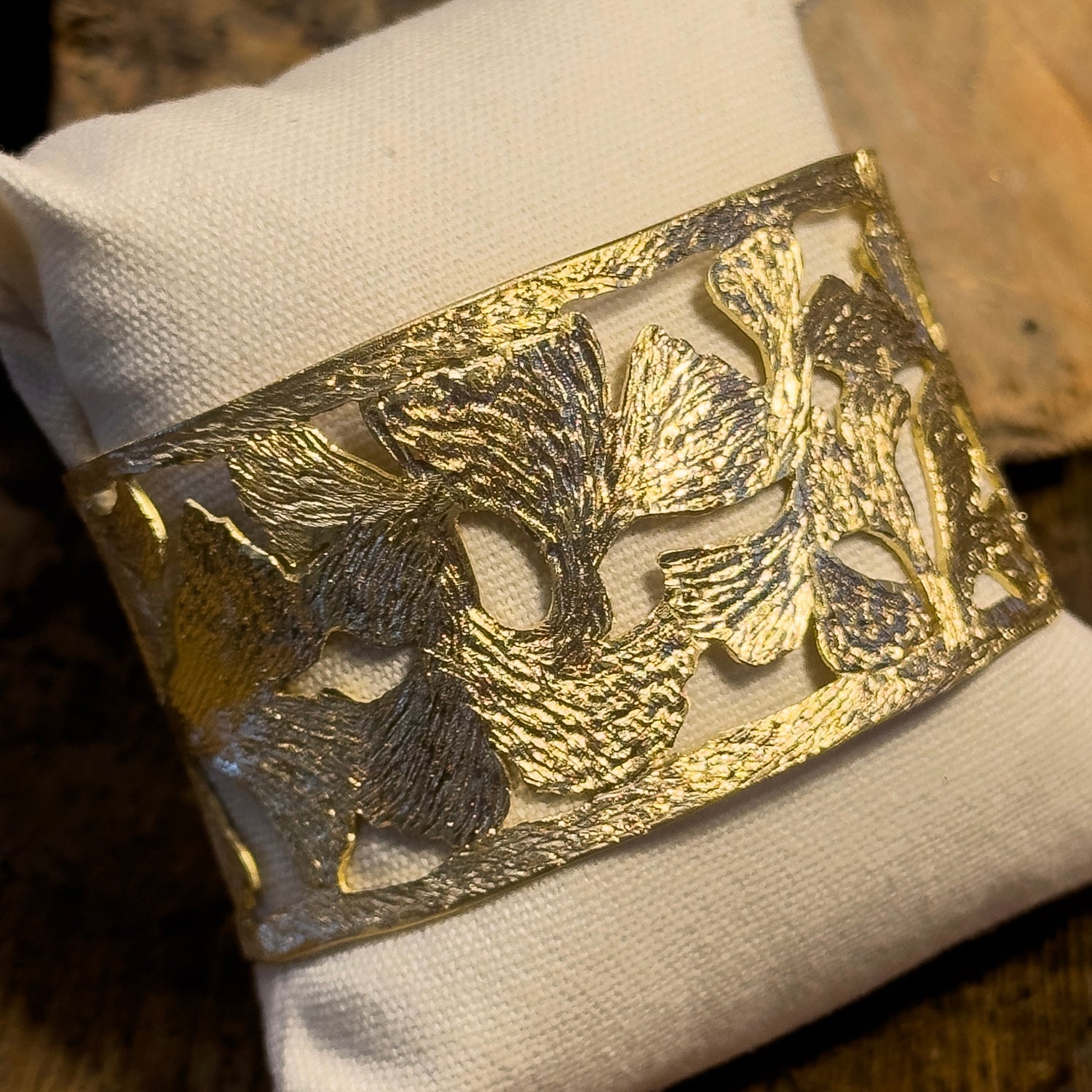 Il bracciale a schiava si distingue per il suo design elegante con foglie di ginkgo. Ogni foglia è scolpita con cura per catturare la delicatezza e la bellezza naturale di questo simbolo di forza e longevità.