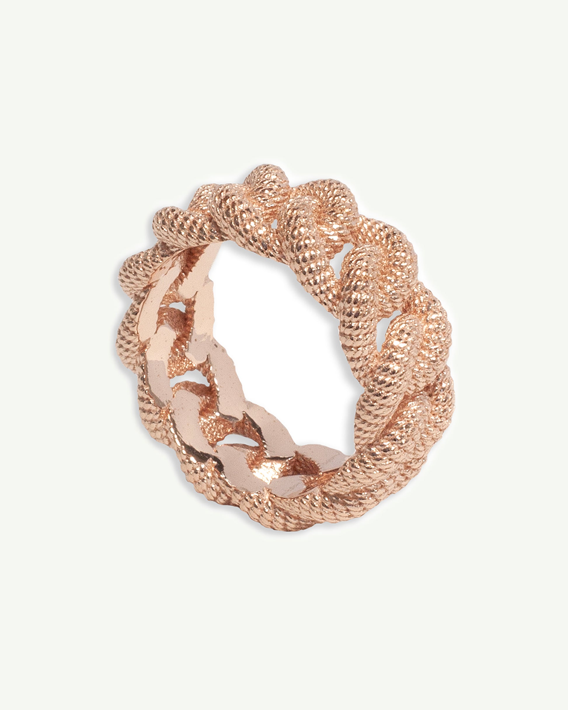 Anello in maglia grumetta in Argento 925, realizzato con una struttura tridimensionale da 2,5 mm. Proposto nelle finiture oro giallo, rodio e oro rosé, è protetto da una placcatura molecolare che mantiene la sua luminosità nel tempo. Questo gioiello invita a vivere intensamente ed elevare l’anima attraverso la bellezza dell’arte, offrendo un tocco finale di classe e raffinatezza.