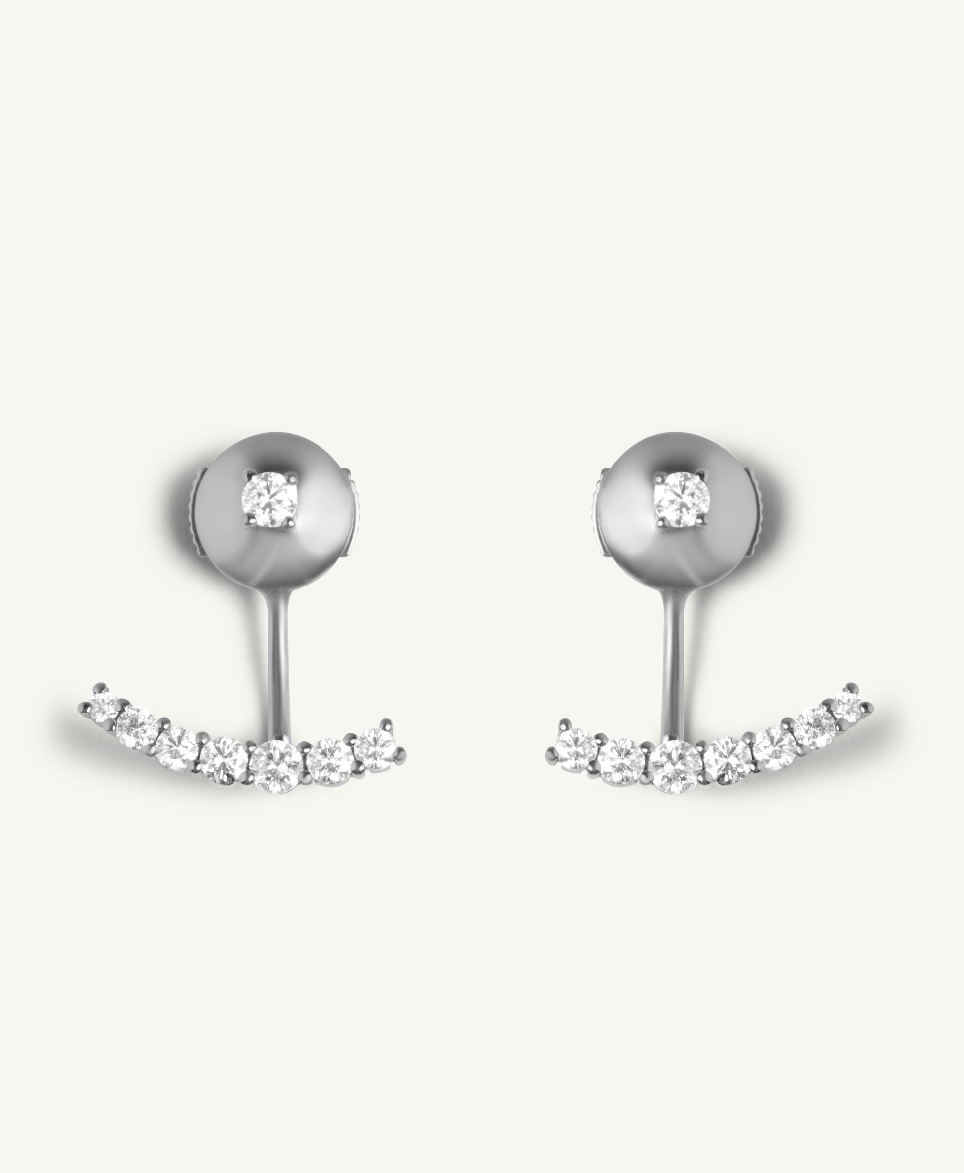 Realizzato in oro bianco 18 carati e impreziosito da 0,51 carati di diamanti taglio brillante, sapientemente disposti in una linea morbida e luminosa che accompagna delicatamente il profilo dell’orecchio. Il design essenziale ma sofisticato esalta la luce naturale dei diamanti, creando un effetto elegante e contemporaneo. La particolarità di questo gioiello è la sua doppia anima: la navette è rimovibile, trasformando l’orecchino in un classico punto luce. Un gioiello versatile, pensato per donare raffinatezza sia nei momenti quotidiani sia nelle occasioni speciali.